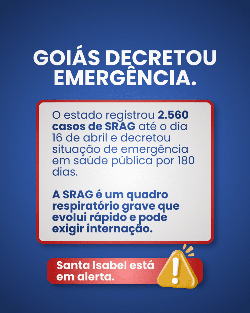 Com o aumento dos casos de SRAG em Goiás, Santa Isabel está em alerta e acompanhando a situação de perto. Por isso, é essencial que cada um faça a sua parte.