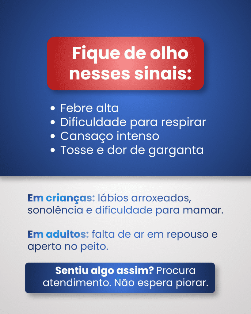 febre alta, dificuldade para respirar, cansaço intenso, tosse e dor de garganta.