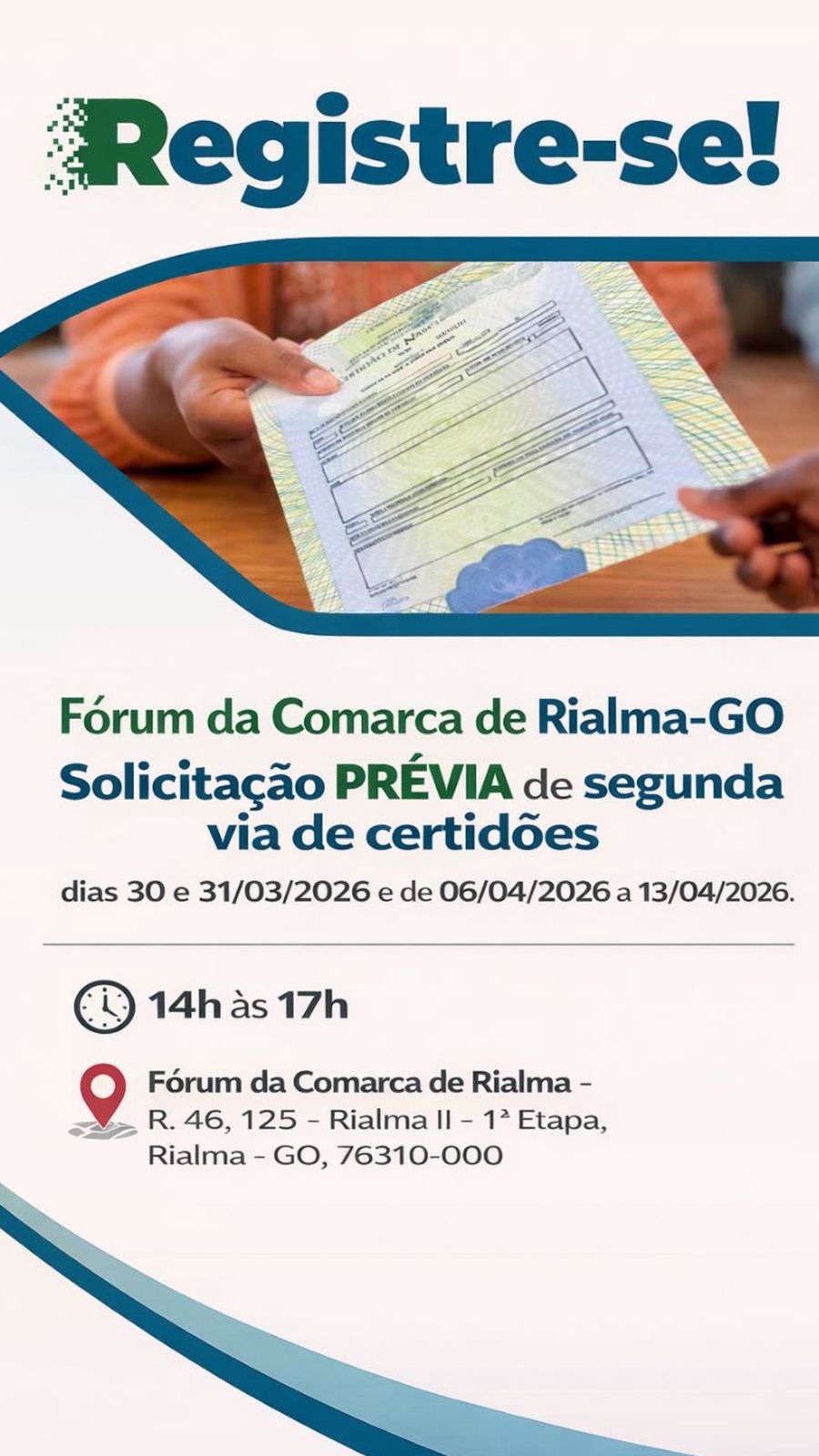 📢 Atenção, população! O Fórum da Comarca de Rialma estará realizando a solicitação prévia para emissão de segunda via…